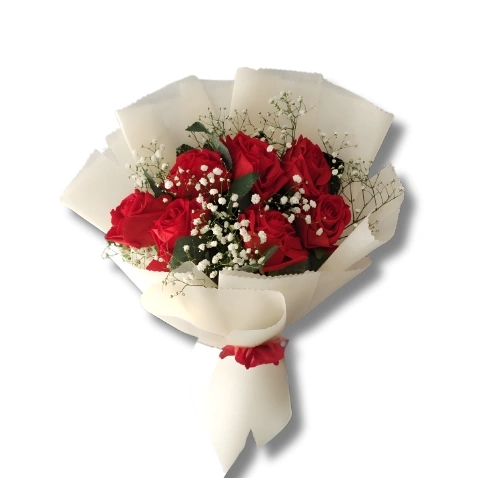 Handcrafted bouquet of 6 premium fresh red roses, symbolizing love and admiration. Ideal for anniversaries, celebrations, or romantic gestures.