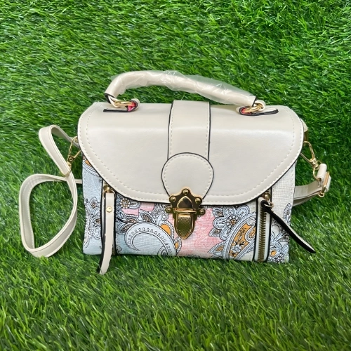 Chic Cream Color Designer Handbag for Women with Unique Patterned Detailing and Spacious Interior