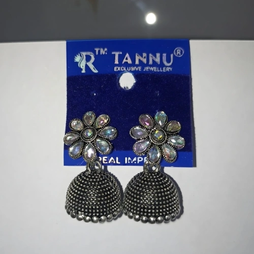 Classic Silver Shimmering Dome Jhumkas with Graceful Swinging Floral Design