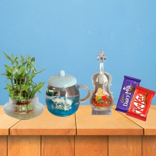 Medium Lucky Bamboo Plant with glass pot (indoor plant)-1