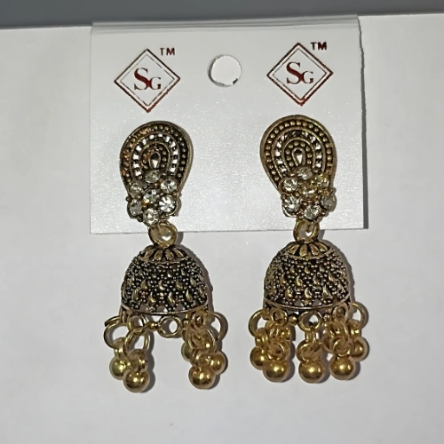 Sophisticated Dark-Gold Black Jhumka Earrings with Detailed Petal Motif and Graceful Drops