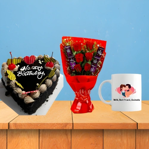 Heart Shaped Chocolate Cake- 1 pound ( With Candles and Knife)