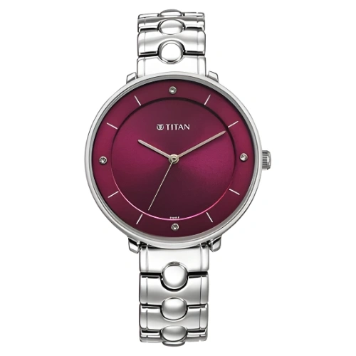 The Titan Workwear Burgundy Dial Silver Stainless Steel Analog Watch for Women (2651SM09) combines everyday elegance with reliable performance. Designed under Titan’s trusted titan collection, this watch features a stylish burgundy dial paired with a stainless steel strap, making it suitable for both casual and formal wear.