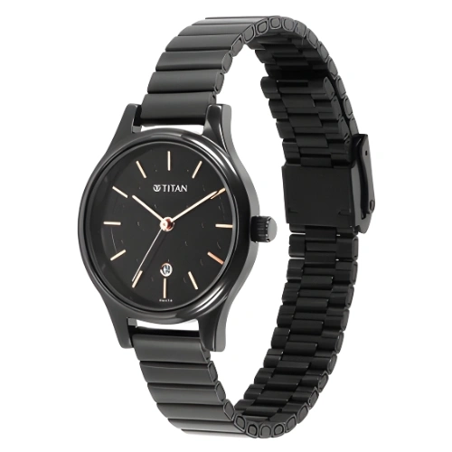The Women Karishma Black Dial Metal Strap Watch (2679NM01) combines everyday elegance with reliable performance. Designed under Titan’s trusted Quartz Analog collection, this watch features a black dial paired with a stainless steel strap, making it suitable for both casual and formal wear.